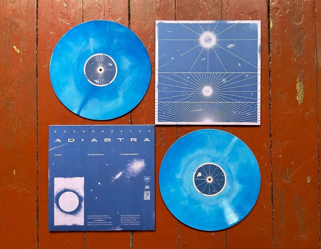 Ad Astra was recorded live in July 2020 in a private garden with a field recorder in front of a small audience of friends during the lockdown in the middle of the corona pandemic. The two long jams were the opening and the closing track of a completely improvised concert and are a spontaneous snapshot of Acid Roosters approach to free floating consciousness expanding psychedelic music.
